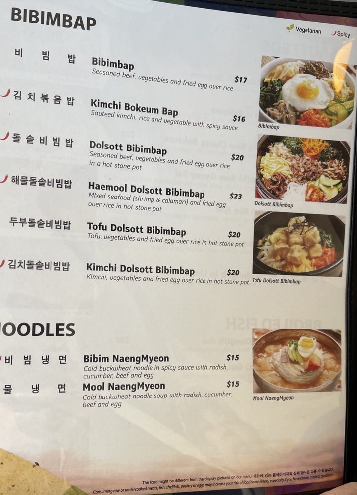 Bibimbap - comes with rice. Plus side dishes separately. (Brown rice is NOT available)