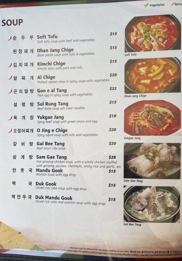 Soup - comes with rice and side dishes separately (Brown rice is NOT available)